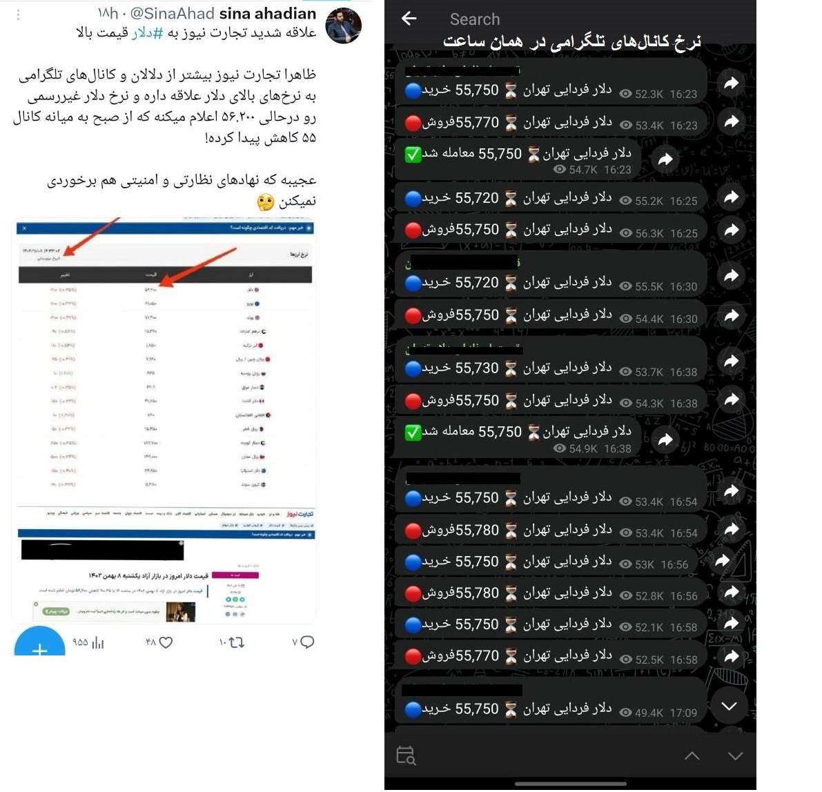 یکی از ابزارهای دامن زدن به نوسانات ایجاد کانالهای تلگرامی نرخ فردایی ارز است. این کانالهای به محض اینکه یک خبر سیاسی و اقتصادی منفی منتشر میشود، به طور ناگهانی نرخهای اعلامی خود را افزایش میدهند تا انتظارات تورمی را با ایجاد هیجانات کاذب افزایش دهند. این در حالیست که هیچگونه معامله واقعی پشت این نرخهای اعلامی وجود ندارد و به هیچ وجه عملکرد این کانالها و اینکه نرخها از چه فرآیندی استخراج میشوند، شفاف نیست.