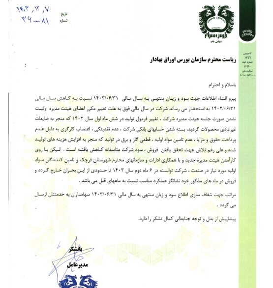گزارش افشای اطلاعات بااهمیت - (سایر اطلاعات بااهمیت - کاهش سود خالص سال مالی منتهی به ۱۴۰۳/۰۶/۳۱ نسبت ب- گروه ب) منتهی به سال مالی ۱۴۰۳/۰۶/۳۱ کسرام منتشر شد.