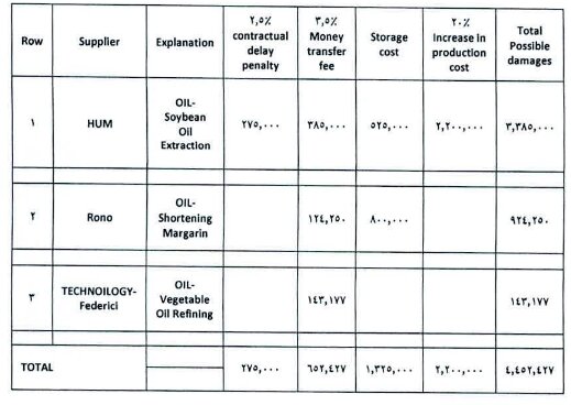 لازم به توضیح است تسهیلگر قرارداد TECHNOLOGY شرکت واسط دیگری میباشد و شرکت واسط مذکور از روی حسن نیت و به جهت کمک به پیشرفت پروژه مبلغ ۲۰۰۹۰۰۷۷۰ یورو را به شرکت TECHNOILOGY به عنوان ثالث پرداخت که در مبلغ ۱۱۶۶۹۰۵۲۰ پورو پرداخت های انجام شده تا کنون لحاظ شده است که در افشاء مورخ ۱۴۰۳/۱۱/۲۰ نام این شرکت ذکر نشده بود. همچنین مقرر شد در خصوص تامین ارز از طریق بانک مرکزی اقدام لازم توسط شرکتهای زردانه و تصفیه روغن خوراکی در انجام گردد و در خصوص خسارات احتمالی جمعا به مبلغ ۴.۴۵۳۴۳۷ بورو به شرح جدول ذیل با سازندگان مذاکره و در صورت اجبار به پرداخت با اخذ مستندات پرداخت انجام شود.
