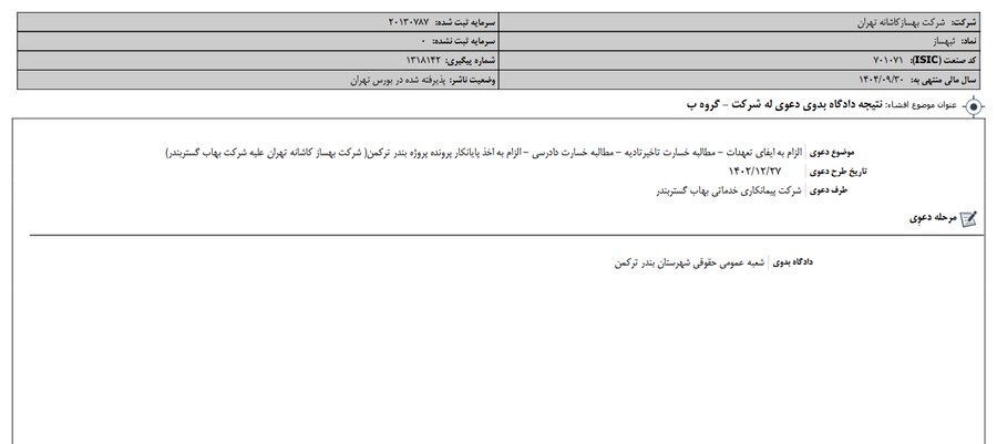 گزارش افشای اطلاعات بااهمیت - (نتیجه دادگاه بدوی دعوی له شرکت - گروه ب) منتهی به سال مالی ۱۴۰۴/۰۹/۳۰ ثبهساز منتشر شد.