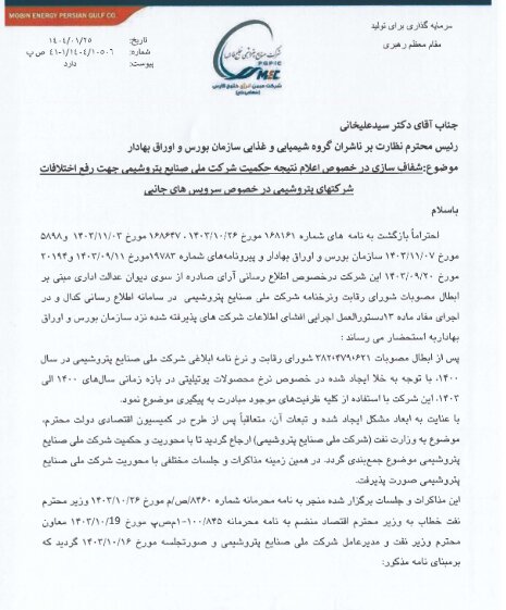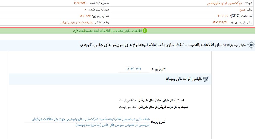 گزارش افشای اطلاعات بااهمیت - (سایر اطلاعات بااهمیت - شفاف سازی بابت اعلام نتیجه نرخ های سرویس های جانبی- گروه ب) منتهی به سال مالی ۱۴۰۴/۱۲/۲۹ مبین منتشر شد.