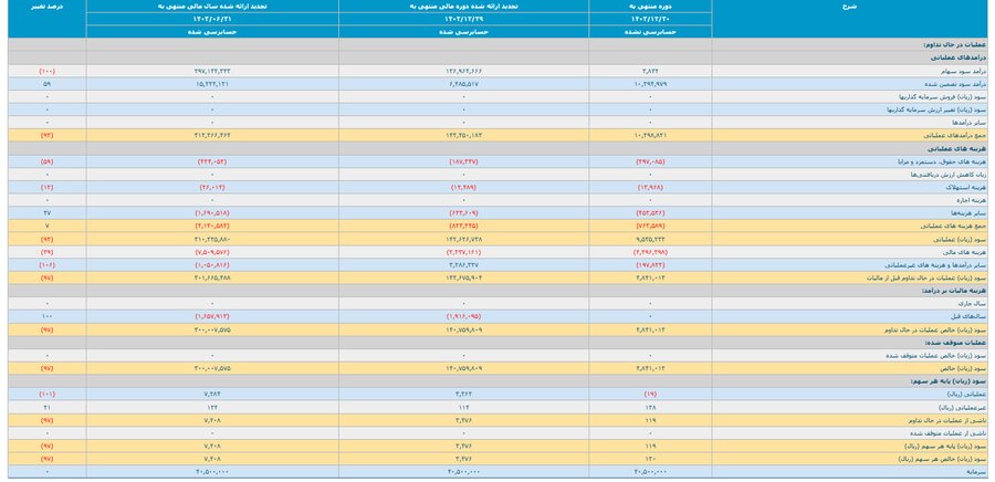 گزارش اطلاعات و صورتهای مالی میاندورهای ۶ ماهه منتهی به ۱۴۰۳/۱۲/۳۰ (حسابرسی نشده) پارسان بررسی شد.