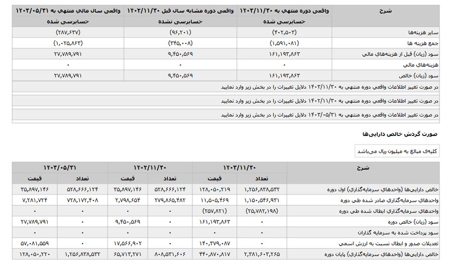 اطلاعات و صورت‌های مالی میاندوره‌ای دوره ۶ ماهه منتهی به ۱۴۰۳/۱۱/۳۰ (حسابرسی شده)(اصلاحیه) عیار مشخص شد.