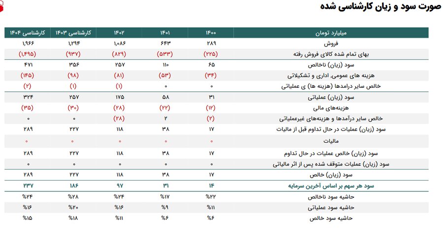 گفتنی است سود هر سهم شرکت برای مدت مشابه منتهی به ۱۴۰۳ مبلغ ۱۸۶ تومان است.