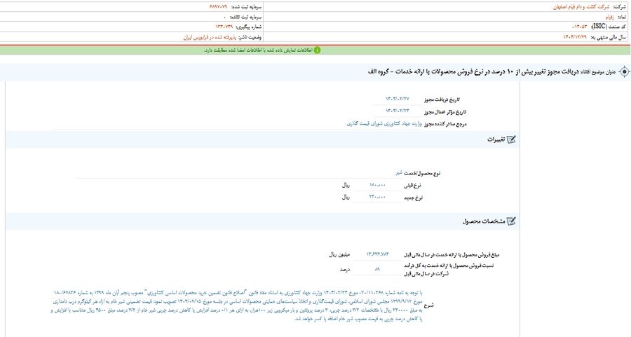 گزارش افشای اطلاعات بااهمیت - (دریافت مجوز تغییر بیش از ۱۰ درصد در نرخ فروش محصولات یا ارائه خدمات - گروه الف) منتهی به سال مالی ۱۴۰۴/۱۲/۲۹ زقیام منتشر شد.