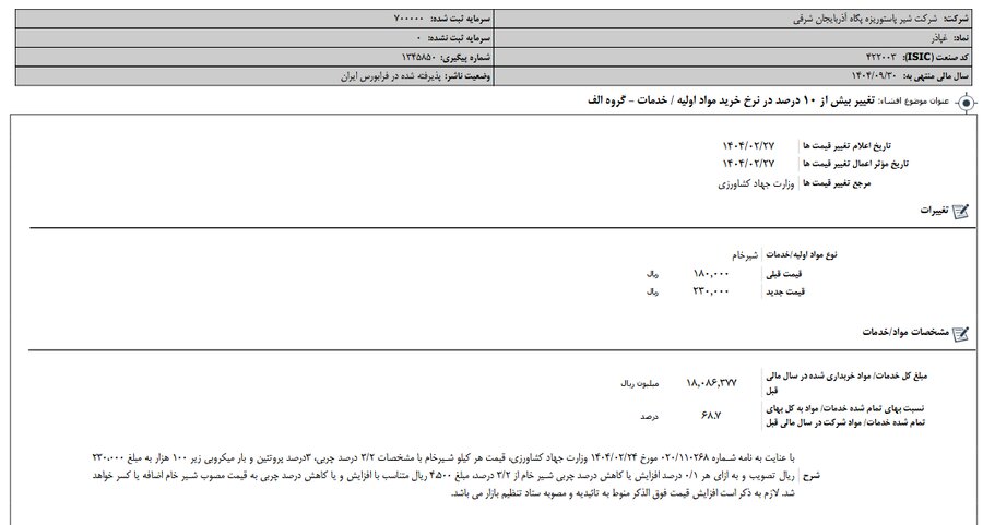 گزارش افشای اطلاعات بااهمیت - (تغییر بیش از ۱۰ درصد در نرخ خرید مواد اولیه / خدمات - گروه الف) منتهی به سال مالی ۱۴۰۴/۰۹/۳۰ غپاذر منتشر شد.