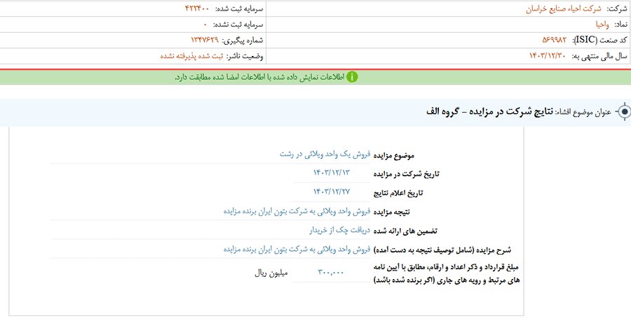 گزارش افشای اطلاعات بااهمیت - (نتایج شرکت در مزایده - گروه الف) منتهی به سال مالی ۱۴۰۳/۱۲/۳۰ واحصا منتشر شد.