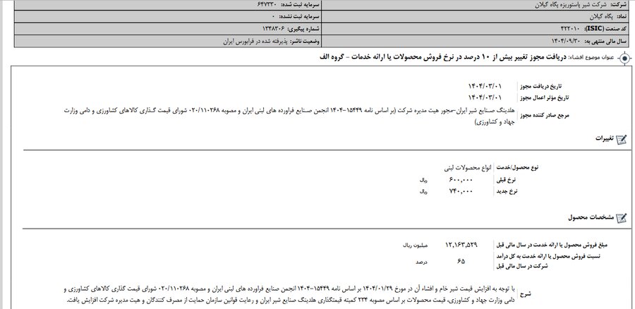 گزارش افشای اطلاعات بااهمیت - (دریافت مجوز تغییر بیش از ۱۰ درصد در نرخ فروش محصولات یا ارائه خدمات - گروه الف) منتهی به سال مالی ۱۴۰۴/۰۹/۳۰ غگیلا منتشر شد.