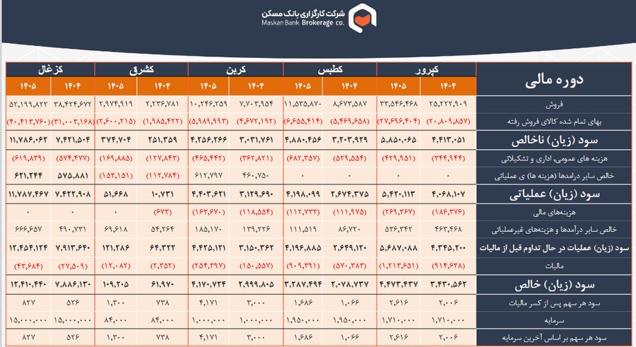 پیش بینی فروش شرکت کپرور برای دوره مالی منتهی به ۱۴۰۵ مبلغ ۳۳۵۵ میلیارد تومان، شرکت کطبس مبلغ ۱۱۵۵ میلیارد تومان، کربن ۱۰۲۵ میلیارد تومان ، کشرق مبلغ ۲۹۷ میلیارد تومان و کزغال به مبلغ ۵۲۲۰ میلیارد تومان است.