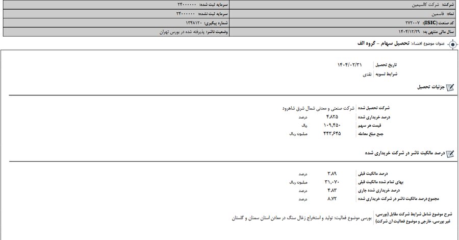 گزارش افشای اطلاعات بااهمیت - (تحصیل سهام - گروه الف) منتهی به سال مالی ۱۴۰۴/۱۲/۲۹ فاسمین منتشر شد.