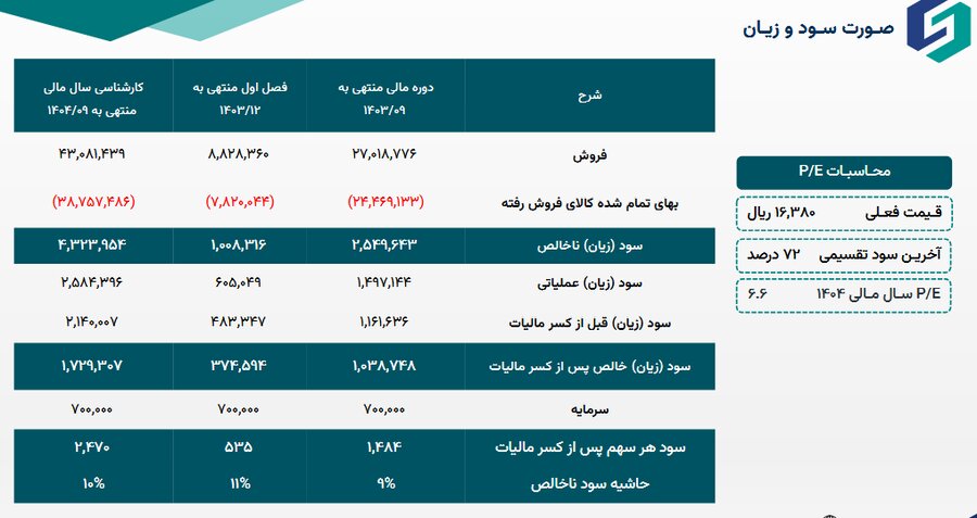 https://sedayebourse.ir/x6vBk۲۴ خرداد ۱۴۰۴ - ۱۶:۰۰ کد خبر 527206 تحلیل ۲۴ خرداد ۱۴۰۴ - ۱۶:۰۰ غپآذر در آینده چقدر درآمد دارد؟ پیش بینی صورتهای مالی شرکت غپآذر در یک تحلیل بنیادی بررسی شد. به گزارش صدای بورس، شـرکت شیر پگاه آذربایجان شرقی فروش را برای دوره مالی منتهی به آذر ماه ۱۴۰۴ مبلغ ۴۳۰۸ میلیارد تومان پیش بینی کرد. شـرکت شیر پگاه آذربایجان شرقی با نماد غپآذر در بورس فعالیت دارد؛ فروش برای دوره مالی منتهی به ۱۲ ماهه مبلغ ۸۸۳ میلیارد تومان است. سود هر سهم پس از کسر مالیات شرکت برای سال مالی ۱۴۰۴ مبلغ ۲۴۷۰ ریال است. همچنین شرکت برای سال مالی ۱۲ ماهه ۱۴۰۳ مبلغ ۵۳۵ ریال است. شرکت P/E را برای سال مالی ۱۴۰۴ حدود ۶.۶ واحد است.حاشیه سود ناخالص شرکت ۱۰ درصد است. منبع: سبدگردان سورین کد خبر 527206 برچسبها غپاذر صدای بورس بازارسهام بازارسرمایه تحلیل تحلیل بنیادی