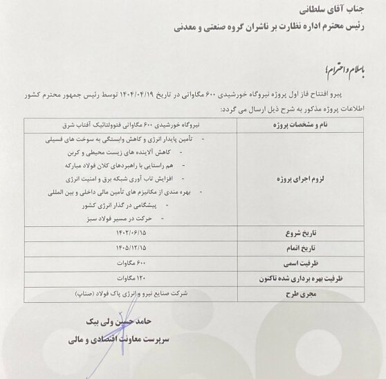 بهره برداری از فاز اول نیروگاه خورشیدی ۶۰۰ مگاواتی در تاریخ ۱۴۰۲/۰۶/۱۵ به منظور تامین پایدار انرژی و کاهش وابستگی به سوخت های فسیلی کاهش آلاینده های زیست محیطی و کربن ، هم راستایی با راهبردهای کلان فولاد مبارکه، افزایش تاب آوری شبکه برق و امنیت انرژی ، بهرمندی از مکانیزم های تامین مالی داخای و بین المللی ، پیشگامی در گذار انرژی کشور، حرکت در مسیر فولاد سبز از ملزومات اجرای این پروژه است.