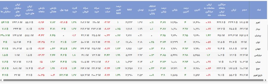 امروز روز مثبت صندوقهای اهرمی بود و اغلب نمادها در محدوده مثبت و نزدیک سقف روزانه بسته شدند. بررسی آمار نشان میدهد که اهرم با حجم بالای ۱۸۱.۶ میلیون واحد و درصد پایانی ۳.۸۹، پیشتاز حجم معاملات بود و نقش پررنگی در گردش نقدینگی امروز ایفا کرد.