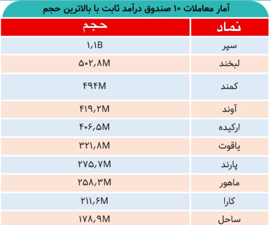 امروز صندوقهای درآمد ثابت شاهد ورود قابل توجه نقدینگی بود و بیش از ۲۴۰ میلیارد تومان سرمایه تازه به این گروه تزریق شد. حجم کل معاملات صندوقهای درآمد ثابت به حدود ۶.۵ میلیارد واحد رسید که نشاندهنده تحرک جدی سرمایهگذاران در این بخش است.