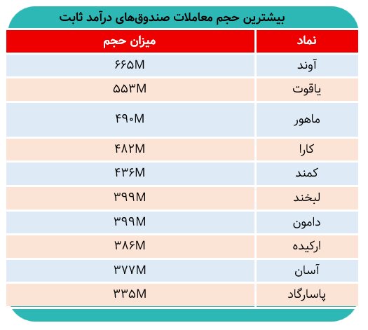بیشرین حجم معاملات مربوط به کدام صندوق درآمدثابت بود؟