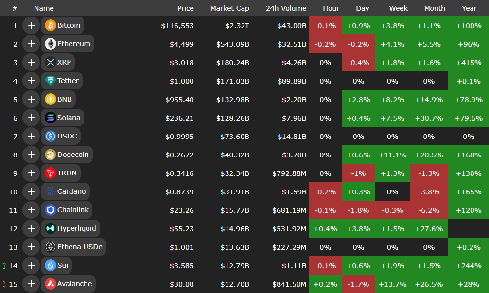 هفته گذشته تعداد کریپتوهای مثبت و منفی بازار تقریبا یکسان بود به طوری که از میان ۱۰۰ رمزارز اصلی بر اساس ارزش بازار، قیمت ۴۶ کریپتو با افزایش و ۴۵ کریپتو با کاهش روبهرو شد.