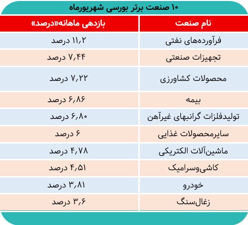 کدام صنایع در شهریور بیشترین بازدهی را داشتند؟