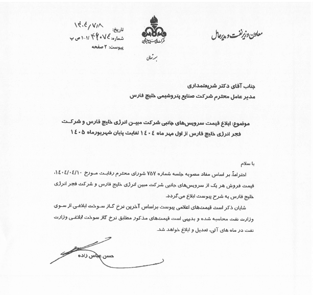 این شرکت در پاسخ به نامه روز ۸ مهر ۱۴۰۴ سازمان بورس اعلام کرد که شرکت ملی صنایع پتروشیمی نرخهای جدید سرویسهای جانبی را برای بازه زمانی ۱ مهر ۱۴۰۴ تا ۳۱ شهریور ۱۴۰۵ ابلاغ کرده است. نرخهای مذکور بهصورت رسمی به پتروشیمی پردیس اعلام و جهت اطلاع سهامداران ارسال شدهاند.