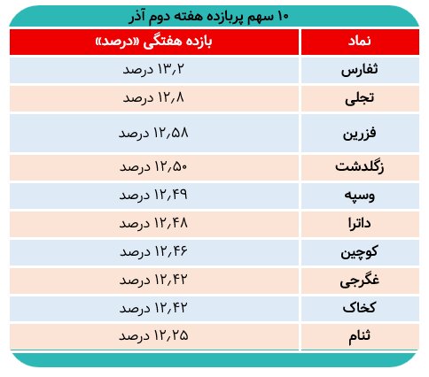 ۱۰ سهم پربازده هفته دوم آذر براساس داده‌های بورس‌ویو: