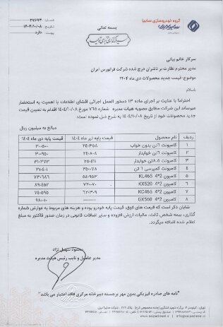در این گزارش، نرخ فروش محصول کامیون کشنده KX۵۲۰ از ۷۲٬۰۷۰٬۰۰۰٬۰۰۰ ریال به ۸۹٬۴۵۲٬۰۰۰٬۰۰۰ ریال افزایش یافته که مبنای آن قیمت پایه خودرو عنوان شده است. همچنین تغییر نرخ سایر محصولات شرکت در فایل اطلاعیه تشریح شده است.